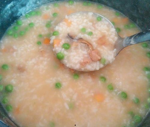 3. 加入辅料:当粥熬至粘稠时,加入切好的胡萝卜、玉米粒、豌豆、香菇、木耳等食材,继续小火慢熬。